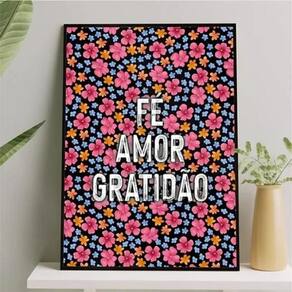 Quadro fé amor gratidão - florzinhas vintage 45x34cm Cor: moldura preta Informações do produto tire todas as suas dúvidas no descritivo abaixo: decoração para quarto, sala, cozinha, escritório, área gourmet e muito mais. Chega de paredes vazias. Medidas - cada peça tem 45x34cm a3 . Material do papel - papel fotográfico brilhante de altíssima resolução acabamento - todos os quadros são acompanhados de uma película de acetato para proteção da imagem. - os quadros são embalados de forma segura com plástico bolha com camada dupla de acordo com o tamanho dos quadros. Garantia - garantia de 3 meses. Meu quadro chegou. Como posso fixá-lo Você precisa apenas de um martelo e um prego, pois os quadros já vão acompanhados de penduradores. Esta é a forma mais indicada. Caso prefira, você pode utilizar uma fita dupla face neste caso, sugerimos de alta qualidade para evitar que descole e seu quadro caia . Como posso limpar meu quadro A limpeza é feita como um móvel comum da sua casa. Apenas um pano seco ou espanador são suficientes para tal