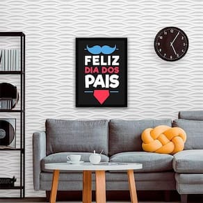 Quadro feliz dia dos pais preto, azul e vermelho 45x34cm - com vidro Moldura: madeira preta Informações do produto tire todas as suas dúvidas no descritivo abaixo: decoração para quarto, sala, cozinha, escritório, área gourmet e muito mais. Chega de paredes vazias medidas - cada peça tem 45x34cm a3 . Material do papel - papel fotográfico brilhante de altíssima resolução acabamento - todos os quadros são acompanhados de vidro para proteção da imagem. - moldura em madeira maciça na cor preta e pendurador . - os quadros são embalados de forma segura com plástico bolha com camada dupla de acordo com o tamanho dos quadros. - de 3 meses. Meu quadro chegou. Como posso fixá-lo Você precisa apenas de um martelo e um prego, pois os quadros já vão acompanhados de penduradores. Esta é a forma mais indicada. Como posso limpar meu quadro A limpeza é feita como um móvel comum da sua casa. Apenas um pano seco ou espanador são suficientes para tal