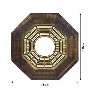 Descrição: O Baguá é um símbolo milenar chinês composto de oito trigramas. Cada qual representando uma área de nossa vida que são: trabalho, sucesso, relacionamentos, criatividade, amigos, espiritualidade, família e prosperidade. O Baguá exalta e desenvolve os aspectos positivos nos ambientes. O reflexo do espelho aliado à figura geométrica e os trigramas forma um escudo protetor que repele energias negativas.