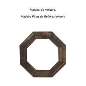 Dados Técnicos: Dimensões: 18,5 x 18,5 x 1 cm Comprimento x Largura x Altura . Peso: 120 gramas. Material: quadro octagonal em madeira, metal e espelho no centro.