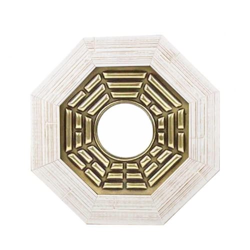 Quadro Feng Shui Baguá Céu Anterior Espelho Convexo Moldura Clara 18cm Quadro Oitavado Feng Shui Baguá do Céu Anterior com Espelho Convexo