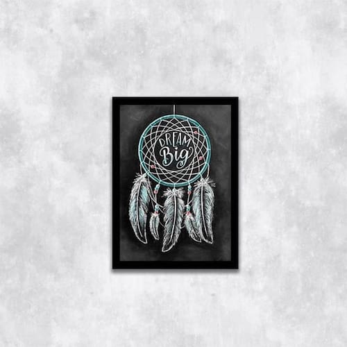 Quadro filtro dos sonhos - dream big 24x18cm Moldura: madeira preta Informações do produto tire todas as suas dúvidas no descritivo abaixo: decoração para quarto, sala, cozinha, escritório, área gourmet e muito mais. Chega de paredes vazias medidas - cada peça tem 24x18cm a5 . Material do papel - papel fotográfico brilhante de altíssima resolução acabamento - todos os quadros são acompanhados de uma película de acetato para proteção da imagem. - moldura em madeira maciça na cor branca e pendurador móvel que pode ser retirado facilmente caso deseje fixar com fita dupla face. - os quadros são embalados de forma segura com plástico bolha com camada dupla de acordo com o tamanho dos quadros. - de 3 meses prazo de envio pedimos 24 horas úteis no máximo para enviar seu pedido após o envio, segue os prazos normais dos correios, cerca de 7 dias úteis exceto para norte e nordeste, que pode ser de até 14 dias úteis. Em diversas cidades, este prazo normalmente é reduzido, mas depende do prazo dos correios. Meu quadro chegou. Como posso fixá-lo Você precisa apenas de um martelo e um prego, pois os quadros já vão acompanhados de penduradores. Esta é a forma mais indicada. Caso prefira, você pode utilizar uma fita dupla face neste caso, sugerimos de alta qualidade para evitar que descole e seu quadro caia . Como posso limpar meu quadro A limpeza é feita como um móvel comum da sua casa. Apenas um pano seco ou espanador são suficientes para tal