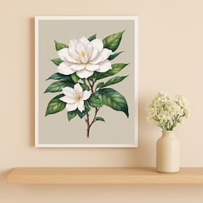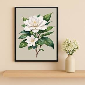 Quadro Flores Gardênia 24x18cm Mold Branca