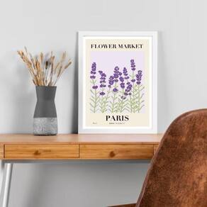 Quadro flower market paris - lavanda 24x18cm - com vidro Cor: moldura preta Informações do produto tire todas as suas dúvidas no descritivo abaixo: decoração para quarto, sala, cozinha, escritório, área gourmet e muito mais. Chega de paredes vazias medidas - cada peça tem 24x18cm a5 . Material do papel - papel fotográfico brilhante de altíssima resolução acabamento - todos os quadros são acompanhados de vidro para proteção da imagem. - moldura em madeira maciça na cor preta ou branca conforme produto escolhido e pendurador . - os quadros são embalados de forma segura com plástico bolha com camada dupla de acordo com o tamanho dos quadros. Garantia - garantia de 3 meses. Meu quadro chegou. Como posso fixá-lo Você precisa apenas de um martelo e um prego, pois os quadros já vão acompanhados de penduradores. Esta é a forma mais indicada. Como posso limpar meu quadro A limpeza é feita como um móvel comum da sua casa. Apenas um pano seco ou espanador são suficientes para tal