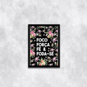 Quadro foco, força, fé e -se 24x18cm Moldura: madeira preta Informações do produto tire todas as suas dúvidas no descritivo abaixo: decoração para quarto, sala, cozinha, escritório, área gourmet e muito mais. Chega de paredes vazias medidas - cada peça tem 24x18cm a5 . Material do papel - papel fotográfico brilhante de altíssima resolução acabamento - todos os quadros são acompanhados de uma película de acetato para proteção da imagem. - moldura em madeira maciça na cor branca e pendurador móvel que pode ser retirado facilmente caso deseje fixar com fita dupla face. - os quadros são embalados de forma segura com plástico bolha com camada dupla de acordo com o tamanho dos quadros. - de 3 meses prazo de envio pedimos 24 horas úteis no máximo para enviar seu pedido após o envio, segue os prazos normais dos correios, cerca de 7 exceto para norte e nordeste, que pode ser de até 14 . Em diversas cidades, este prazo normalmente é reduzido, mas depende do prazo dos correios. Meu quadro chegou. Como posso fixá-lo Você precisa apenas de um martelo e um prego, pois os quadros já vão acompanhados de penduradores. Esta é a forma mais indicada. Caso prefira, você pode utilizar uma fita dupla face neste caso, sugerimos de alta qualidade para evitar que descole e seu quadro caia . Como posso limpar meu quadro A limpeza é feita como um móvel comum da sua casa. Apenas um pano seco ou espanador são suficientes para tal Marca: Não Informado