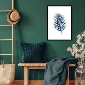 Quadro folha palmeira azul - 60x48cm Moldura: madeira preta Informações do produto tire todas as suas dúvidas no descritivo abaixo: decoração para quarto, sala, cozinha, escritório, área gourmet e muito mais. Chega de paredes vazias medidas - cada peça tem 60x48cm . Material do papel - papel fotográfico brilhante de altíssima resolução acabamento - todos os quadros são acompanhados de vidro para proteção da imagem. - moldura em madeira maciça na cor preta ou branca conforme produto escolhido e pendurador. - paspatur branco com 7cm de largura - os quadros são embalados de forma segura com plástico bolha com camada dupla de acordo com o tamanho dos quadros. Garantia - garantia de 3 meses. Meu quadro chegou. Como posso fixá-lo Você precisa apenas de um martelo e um prego, pois os quadros já vão acompanhados de penduradores. Esta é a forma mais indicada. Como posso limpar meu quadro A limpeza é feita como um móvel comum da sua casa. Apenas um pano seco ou espanador são suficientes para tal