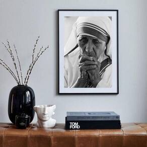Quadro foto madre teresa de calcutá - 60x48cm Moldura: madeira branca Informações do produto tire todas as suas dúvidas no descritivo abaixo: decoração para quarto, sala, cozinha, escritório, área gourmet e muito mais. Chega de paredes vazias medidas - cada peça tem 60x48cm . Material do papel - papel fotográfico brilhante de altíssima resolução acabamento - todos os quadros são acompanhados de vidro para proteção da imagem. - moldura em madeira maciça na cor preta ou branca conforme produto escolhido e pendurador. - paspatur branco com 7cm de largura - os quadros são embalados de forma segura com plástico bolha com camada dupla de acordo com o tamanho dos quadros. Garantia - garantia de 3 meses. Meu quadro chegou. Como posso fixá-lo Você precisa apenas de um martelo e um prego, pois os quadros já vão acompanhados de penduradores. Esta é a forma mais indicada. Como posso limpar meu quadro A limpeza é feita como um móvel comum da sua casa. Apenas um pano seco ou espanador são suficientes para tal
