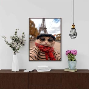 Quadro foto selfie gata em paris 24x18cm Cor: moldura preta Informações do produto tire todas as suas dúvidas no descritivo abaixo: decoração para quarto, sala, cozinha, escritório, área gourmet e muito mais. Chega de paredes vazias medidas - cada peça tem 24x18cm a5 . Material do papel - papel fotográfico brilhante de altíssima resolução acabamento - todos os quadros são acompanhados de uma película de acetato para proteção da imagem. - os quadros são embalados de forma segura com plástico bolha com camada dupla de acordo com o tamanho dos quadros. - de 3 meses. Meu quadro chegou. Como posso fixá-lo Você precisa apenas de um martelo e um prego, pois os quadros já vão acompanhados de penduradores. Esta é a forma mais indicada. Caso prefira, você pode utilizar uma fita dupla face neste caso, sugerimos de alta qualidade para evitar que descole e seu quadro caia . Como posso limpar meu quadro A limpeza é feita como um móvel comum da sua casa. Apenas um pano seco ou espanador são suficientes para tal Ean: 7891234546456