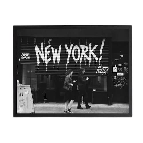 Quadro Fotografia Cena New York 24X18Cm Moldura: madeira branca
