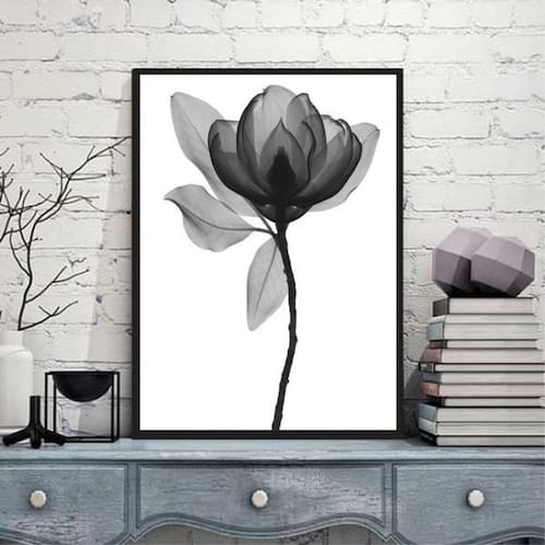 Quadro fotografia de flor preto e cinza 33x24cm Moldura: madeira preta