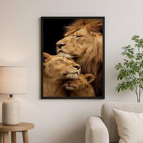 Quadro fotografia família de leões amorosos 45x34cm Cor: moldura preta Informações do produto tire todas as suas dúvidas no descritivo abaixo: decoração para quarto, sala, cozinha, escritório, área gourmet e muito mais. Chega de paredes vazias. Medidas - cada peça tem 45x34cm a3 . Material do papel - papel fotográfico brilhante de altíssima resolução acabamento - todos os quadros são acompanhados de uma película de acetato para proteção da imagem. - os quadros são embalados de forma segura com plástico bolha com camada dupla de acordo com o tamanho dos quadros. - de 3 meses. Meu quadro chegou. Como posso fixá-lo Você precisa apenas de um martelo e um prego, pois os quadros já vão acompanhados de penduradores. Esta é a forma mais indicada. Caso prefira, você pode utilizar uma fita dupla face neste caso, sugerimos de alta qualidade para evitar que descole e seu quadro caia . Como posso limpar meu quadro A limpeza é feita como um móvel comum da sua casa. Apenas um pano seco ou espanador são suficientes para tal Marca: Não Informado Ean: 7901081908786