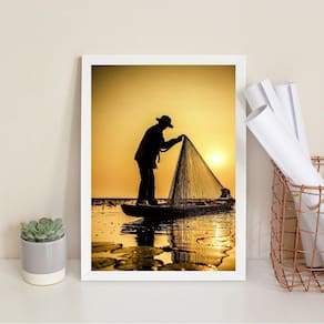 Quadro fotografia pescador- por do sol 45x34cm Moldura: madeira branca Informações do produto tire todas as suas dúvidas no descritivo abaixo: decoração para quarto, sala, cozinha, escritório, área gourmet e muito mais. Chega de paredes vazias. Medidas - cada peça tem 45x34cm a3 . Material do papel - papel fotográfico brilhante de altíssima resolução acabamento - todos os quadros são acompanhados de uma película de acetato para proteção da imagem. - os quadros são embalados de forma segura com plástico bolha com camada dupla de acordo com o tamanho dos quadros. Garantia - garantia de 3 meses. Meu quadro chegou. Como posso fixá-lo Você precisa apenas de um martelo e um prego, pois os quadros já vão acompanhados de penduradores. Esta é a forma mais indicada. Caso prefira, você pode utilizar uma fita dupla face neste caso, sugerimos de alta qualidade para evitar que descole e seu quadro caia . Como posso limpar meu quadro A limpeza é feita como um móvel comum da sua casa. Apenas um pano seco ou espanador são suficientes para tal Ean: 7890527664259
