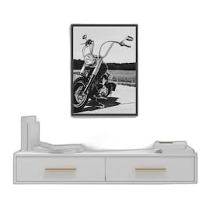 Quadro fotografia preto e branca moto 24x18cm - com vidro Moldura: madeira branca Informações do produto tire todas as suas dúvidas no descritivo abaixo: decoração para quarto, sala, cozinha, escritório, área gourmet e muito mais. Chega de paredes vazias medidas - cada peça tem 24x18cm a5 . Material do papel - papel fotográfico brilhante de altíssima resolução acabamento - todos os quadros são acompanhados de vidro para proteção da imagem. - moldura em madeira maciça na cor preta e pendurador . - os quadros são embalados de forma segura com plástico bolha com camada dupla de acordo com o tamanho dos quadros. Garantia - garantia de 3 meses. Meu quadro chegou. Como posso fixá-lo Você precisa apenas de um martelo e um prego, pois os quadros já vão acompanhados de penduradores. Esta é a forma mais indicada. Como posso limpar meu quadro A limpeza é feita como um móvel comum da sua casa. Apenas um pano seco ou espanador são suficientes para tal