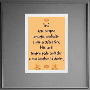 Quadro frase yoga - controle 24x18cm Moldura: madeira preta Informações do produto tire todas as suas dúvidas no descritivo abaixo: decoração para quarto, sala, cozinha, escritório, área gourmet e muito mais. Chega de paredes vazias medidas - cada peça tem 24x18cm a5 . Material do papel - papel fotográfico brilhante de altíssima resolução acabamento - todos os quadros são acompanhados de uma película de acetato para proteção da imagem. - os quadros são embalados de forma segura com plástico bolha com camada dupla de acordo com o tamanho dos quadros. Garantia - garantia de 3 meses. Meu quadro chegou. Como posso fixá-lo Você precisa apenas de um martelo e um prego, pois os quadros já vão acompanhados de penduradores. Esta é a forma mais indicada. Caso prefira, você pode utilizar uma fita dupla face neste caso, sugerimos de alta qualidade para evitar que descole e seu quadro caia . Como posso limpar meu quadro A limpeza é feita como um móvel comum da sua casa. Apenas um pano seco ou espanador são suficientes para tal