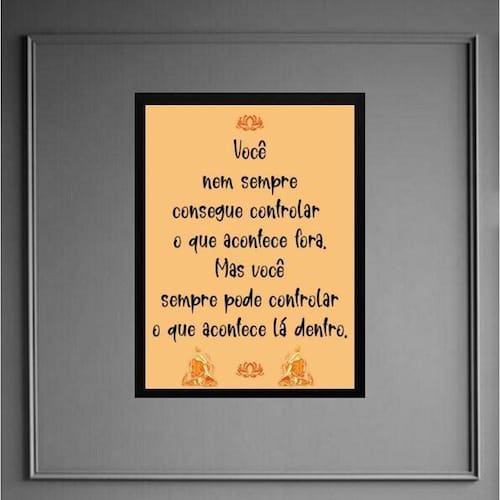 Quadro frase yoga - controle 33x24cm - com vidro Moldura: madeira branca Informações do produto tire todas as suas dúvidas no descritivo abaixo: decoração para quarto, sala, cozinha, escritório, área gourmet e muito mais. Chega de paredes vazias medidas - cada peça tem 33x24cm a4 . Material do papel - papel fotográfico brilhante de altíssima resolução acabamento - todos os quadros são acompanhados de vidro para proteção da imagem. - moldura em madeira maciça na cor preta ou branca conforme produto escolhido e pendurador . - os quadros são embalados de forma segura com plástico bolha com camada dupla de acordo com o tamanho dos quadros. Garantia - garantia de 3 meses. Meu quadro chegou. Como posso fixá-lo Você precisa apenas de um martelo e um prego, pois os quadros já vão acompanhados de penduradores. Esta é a forma mais indicada. Como posso limpar meu quadro A limpeza é feita como um móvel comum da sua casa. Apenas um pano seco ou espanador são suficientes para tal