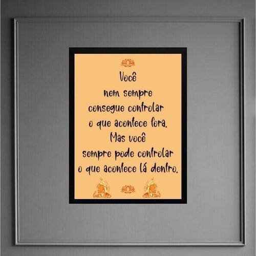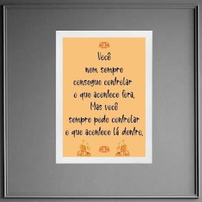 Quadro frase yoga - controle 33x24cm Moldura: madeira branca Informações do produto tire todas as suas dúvidas no descritivo abaixo: decoração para quarto, sala, cozinha, escritório, área gourmet e muito mais. Chega de paredes vazias medidas - cada peça tem 33x24cm a4 . Material do papel - papel fotográfico brilhante de altíssima resolução acabamento - todos os quadros são acompanhados de uma película de acetato para proteção da imagem. - os quadros são embalados de forma segura com plástico bolha com camada dupla de acordo com o tamanho dos quadros. Garantia - garantia de 3 meses. Meu quadro chegou. Como posso fixá-lo Você precisa apenas de um martelo e um prego, pois os quadros já vão acompanhados de penduradores. Esta é a forma mais indicada. Caso prefira, você pode utilizar uma fita dupla face neste caso, sugerimos de alta qualidade para evitar que descole e seu quadro caia . Como posso limpar meu quadro A limpeza é feita como um móvel comum da sua casa. Apenas um pano seco ou espanador são suficientes para tal