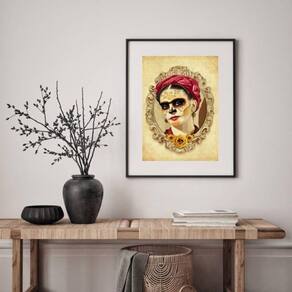 Quadro frida dia de los muertos - 60x48cm Moldura: madeira branca Informações do produto tire todas as suas dúvidas no descritivo abaixo: decoração para quarto, sala, cozinha, escritório, área gourmet e muito mais. Chega de paredes vazias medidas - cada peça tem 60x48cm . Material do papel - papel fotográfico brilhante de altíssima resolução acabamento - todos os quadros são acompanhados de vidro para proteção da imagem. - moldura em madeira maciça na cor preta ou branca conforme produto escolhido e pendurador. - paspatur branco com 7cm de largura - os quadros são embalados de forma segura com plástico bolha com camada dupla de acordo com o tamanho dos quadros. - de 3 meses. Meu quadro chegou. Como posso fixá-lo Você precisa apenas de um martelo e um prego, pois os quadros já vão acompanhados de penduradores. Esta é a forma mais indicada. Como posso limpar meu quadro A limpeza é feita como um móvel comum da sua casa. Apenas um pano seco ou espanador são suficientes para tal Marca: Não Informado