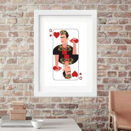 Quadro frida kahlo carta baralho - 60x48cm Moldura: madeira branca Informações do produto tire todas as suas dúvidas no descritivo abaixo: decoração para quarto, sala, cozinha, escritório, área gourmet e muito mais. Chega de paredes vazias medidas - cada peça tem 60x48cm . Material do papel - papel fotográfico brilhante de altíssima resolução acabamento - todos os quadros são acompanhados de vidro para proteção da imagem. - moldura em madeira maciça na cor preta ou branca conforme produto escolhido e pendurador. - paspatur branco com 7cm de largura - os quadros são embalados de forma segura com plástico bolha com camada dupla de acordo com o tamanho dos quadros. Garantia - garantia de 3 meses. Meu quadro chegou. Como posso fixá-lo Você precisa apenas de um martelo e um prego, pois os quadros já vão acompanhados de penduradores. Esta é a forma mais indicada. Como posso limpar meu quadro A limpeza é feita como um móvel comum da sua casa. Apenas um pano seco ou espanador são suficientes para tal