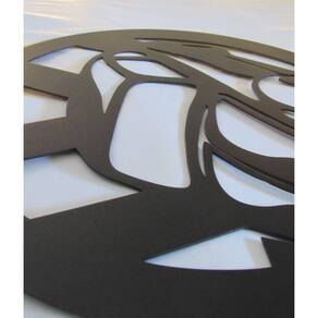 Quadro Decorativo fabricado em Chapa de Aço 1,5mm cortado em máquina Laser Fibra Ótica, gerando altíssima precisão nos detalhes, para o acabamento utilizamos pintura através do sistema de Pintura Eletrostática à Pó conhecido popularmente como pintura epóxi, assegurando ao produto maior resistência, e um Acabamento Superior Na cor Preto Fosco com Textura Lixa