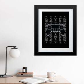 Quadro Gamer Controle Preto e Branco - 60x48cm - Moldura: Madeira preta