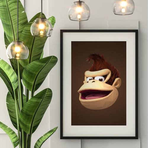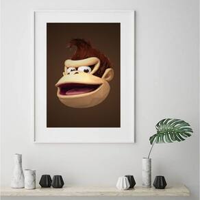 Quadro Gamer Donkey Kong - 60x48cm - Moldura: Madeira branca