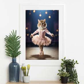 Quadro gatinha bailarina - 60x48cm Cor: moldura branca Informações do produto tire todas as suas dúvidas no descritivo abaixo: decoração para quarto, sala, cozinha, escritório, área gourmet e muito mais. Chega de paredes vazias medidas - cada peça tem 60x48cm . Material do papel - papel fotográfico brilhante de altíssima resolução acabamento - todos os quadros são acompanhados de vidro para proteção da imagem. - moldura em madeira maciça na cor preta ou branca conforme produto escolhido e pendurador. - paspatur branco com 7cm de largura - os quadros são embalados de forma segura com plástico bolha com camada dupla de acordo com o tamanho dos quadros. Garantia - garantia de 3 meses. Meu quadro chegou. Como posso fixá-lo Você precisa apenas de um martelo e um prego, pois os quadros já vão acompanhados de penduradores. Esta é a forma mais indicada. Como posso limpar meu quadro A limpeza é feita como um móvel comum da sua casa. Apenas um pano seco ou espanador são suficientes para tal Ean: 7891234544223