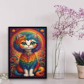 O papel fotográfico brilhante de altíssima resolução utilizado neste quadro proporciona cores vivas e vibrantes, realçando os detalhes da imagem da gatinha colorida. Com um acabamento impecável, este quadro é perfeito para quem busca qualidade e sofisticação na decoração.