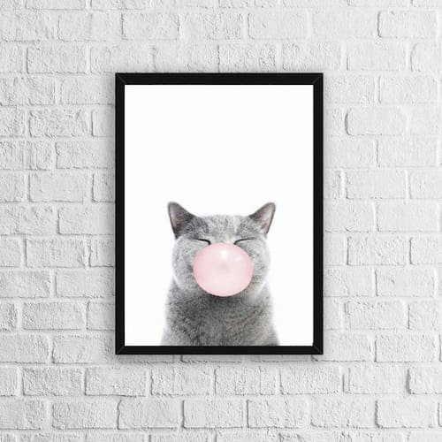 Quadro Gatinho Chiclete 24X18Cm Moldura: madeira branca Informações do produto Decoração para quarto, sala, cozinha, escritório, área gourmet e muito mais. Chega de paredes vazias. Medidas - cada peça tem 24x18cm a5 . Material do papel - papel fotográfico brilhante de altíssima resolução Acabamento - todos os quadros são acompanhados de uma película de acetato para proteção da imagem. - moldura em madeira maciça na cor branca e pendurador móvel que pode ser retirado facilmente caso deseje fixar com fita dupla face. - os quadros são embalados de forma segura com plástico bolha com camada dupla de acordo com o tamanho dos quadros. - de 3 meses Meu quadro chegou. Como posso fixá-lo: Você precisa apenas de um martelo e um prego, pois os quadros já vão acompanhados de penduradores. Esta é a forma mais indicada. Caso prefira, você pode utilizar uma fita dupla face neste caso, sugerimos de alta qualidade para evitar que descole e seu quadro caia . Como posso limpar meu quadro: A limpeza é feita como um móvel comum da sua casa. Apenas um pano seco ou espanador são suficientes para tal Marca: Não Informado