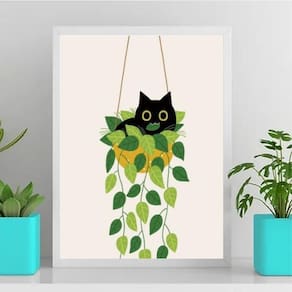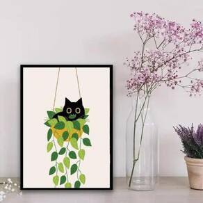 Quadro gatinho no vaso de planta 24x18cm - com vidro