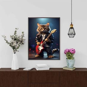 Quadro gatinho roqueiro - guitarra 24x18cm - com vidro Cor: moldura branca Informações do produto tire todas as suas dúvidas no descritivo abaixo: decoração para quarto, sala, cozinha, escritório, área gourmet e muito mais. Chega de paredes vazias medidas - cada peça tem 24x18cm a5 . Material do papel - papel fotográfico brilhante de altíssima resolução acabamento - todos os quadros são acompanhados de vidro para proteção da imagem. - moldura em madeira maciça na cor preta ou branca conforme produto escolhido e pendurador . - os quadros são embalados de forma segura com plástico bolha com camada dupla de acordo com o tamanho dos quadros. Garantia - garantia de 3 meses. Meu quadro chegou. Como posso fixá-lo Você precisa apenas de um martelo e um prego, pois os quadros já vão acompanhados de penduradores. Esta é a forma mais indicada. Como posso limpar meu quadro A limpeza é feita como um móvel comum da sua casa. Apenas um pano seco ou espanador são suficientes para tal