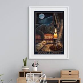 Quadro Gato Bruxo Com Vela - 60X48Cm