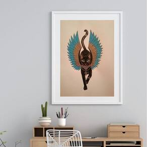 Quadro gato egípcio bastet - 60x48cm Moldura: madeira preta Informações do produto tire todas as suas dúvidas no descritivo abaixo: decoração para quarto, sala, cozinha, escritório, área gourmet e muito mais. Chega de paredes vazias medidas - cada peça tem 60x48cm . Material do papel - papel fotográfico brilhante de altíssima resolução acabamento - todos os quadros são acompanhados de vidro para proteção da imagem. - moldura em madeira maciça na cor preta ou branca conforme produto escolhido e pendurador. - paspatur branco com 7cm de largura - os quadros são embalados de forma segura com plástico bolha com camada dupla de acordo com o tamanho dos quadros. Garantia - garantia de 3 meses. Meu quadro chegou. Como posso fixá-lo Você precisa apenas de um martelo e um prego, pois os quadros já vão acompanhados de penduradores. Esta é a forma mais indicada. Como posso limpar meu quadro A limpeza é feita como um móvel comum da sua casa. Apenas um pano seco ou espanador são suficientes para tal