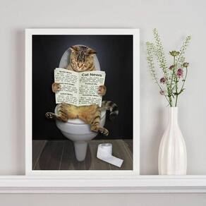 Quadro gato no banheiro lendo jornal 24x18cm Moldura: madeira branca Informações do produto tire todas as suas dúvidas no descritivo abaixo: decoração para quarto, sala, cozinha, escritório, área gourmet e muito mais. Chega de paredes vazias medidas - cada peça tem 24x18cm a5 . Material do papel - papel fotográfico brilhante de altíssima resolução acabamento - todos os quadros são acompanhados de uma película de acetato para proteção da imagem. - os quadros são embalados de forma segura com plástico bolha com camada dupla de acordo com o tamanho dos quadros. Garantia - garantia de 3 meses. Meu quadro chegou. Como posso fixá-lo Você precisa apenas de um martelo e um prego, pois os quadros já vão acompanhados de penduradores. Esta é a forma mais indicada. Caso prefira, você pode utilizar uma fita dupla face neste caso, sugerimos de alta qualidade para evitar que descole e seu quadro caia . Como posso limpar meu quadro A limpeza é feita como um móvel comum da sua casa. Apenas um pano seco ou espanador são suficientes para tal Ean: 7893434748432