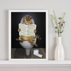 Quadro gato no banheiro lendo jornal 33x24cm - com vidro Moldura: madeira preta Informações do produto tire todas as suas dúvidas no descritivo abaixo: decoração para quarto, sala, cozinha, escritório, área gourmet e muito mais. Chega de paredes vazias medidas - cada peça tem 33x24cm a4 . Material do papel - papel fotográfico brilhante de altíssima resolução acabamento - todos os quadros são acompanhados de vidro para proteção da imagem. - moldura em madeira maciça na cor preta ou branca conforme produto escolhido e pendurador . - os quadros são embalados de forma segura com plástico bolha com camada dupla de acordo com o tamanho dos quadros. Garantia - garantia de 3 meses. Meu quadro chegou. Como posso fixá-lo Você precisa apenas de um martelo e um prego, pois os quadros já vão acompanhados de penduradores. Esta é a forma mais indicada. Como posso limpar meu quadro A limpeza é feita como um móvel comum da sua casa. Apenas um pano seco ou espanador são suficientes para tal Ean: 7896934625715