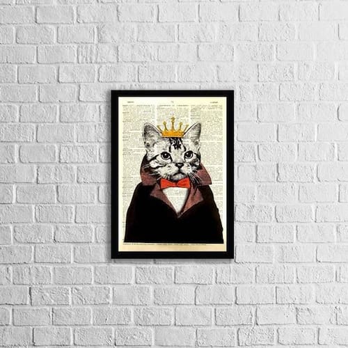 Quadro Gato Rei 24X18Cm Moldura: madeira branca Informações do produto Decoração para quarto, sala, cozinha, escritório, área gourmet e muito mais. Chega de paredes vazias. Medidas - cada peça tem 24x18cm a5 . Material do papel - papel fotográfico brilhante de altíssima resolução Acabamento - todos os quadros são acompanhados de uma película de acetato para proteção da imagem. - moldura em madeira maciça na cor branca e pendurador móvel que pode ser retirado facilmente caso deseje fixar com fita dupla face. - os quadros são embalados de forma segura com plástico bolha com camada dupla de acordo com o tamanho dos quadros. - de 3 meses Meu quadro chegou. Como posso fixá-lo: Você precisa apenas de um martelo e um prego, pois os quadros já vão acompanhados de penduradores. Esta é a forma mais indicada. Caso prefira, você pode utilizar uma fita dupla face neste caso, sugerimos de alta qualidade para evitar que descole e seu quadro caia . Como posso limpar meu quadro: A limpeza é feita como um móvel comum da sua casa. Apenas um pano seco ou espanador são suficientes para tal Marca: Não Informado