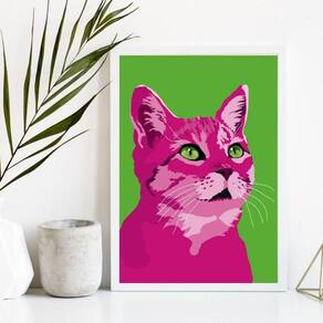 Deixe o seu ambiente mais alegre e descontraído com o Quadro Decorativo Gato Rosa Pop Art 45X34Cm - Com Vidro. Adquira já o seu e transforme a decoração do seu espaço! Ean: 7891747723399
