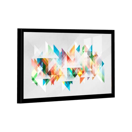 Quadro Geométrico Multicolorido -- BR ARTES Moldura Preta e Vidro - Ultra Grande 150x100 -