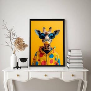 Quadro girafa moderna fashion colorida de óculos 45x34cm Cor: moldura branca Informações do produto tire todas as suas dúvidas no descritivo abaixo: decoração para quarto, sala, cozinha, escritório, área gourmet e muito mais. Chega de paredes vazias. Medidas - cada peça tem 45x34cm a3 . Material do papel - papel fotográfico brilhante de altíssima resolução acabamento - todos os quadros são acompanhados de uma película de acetato para proteção da imagem. - os quadros são embalados de forma segura com plástico bolha com camada dupla de acordo com o tamanho dos quadros. - de 3 meses. Meu quadro chegou. Como posso fixá-lo Você precisa apenas de um martelo e um prego, pois os quadros já vão acompanhados de penduradores. Esta é a forma mais indicada. Caso prefira, você pode utilizar uma fita dupla face neste caso, sugerimos de alta qualidade para evitar que descole e seu quadro caia . Como posso limpar meu quadro A limpeza é feita como um móvel comum da sua casa. Apenas um pano seco ou espanador são suficientes para tal