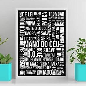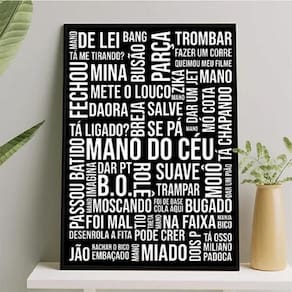 Quadro gírias de são paulo preto e branco 33x24cm Moldura: madeira branca Informações do produto tire todas as suas dúvidas no descritivo abaixo: decoração para quarto, sala, cozinha, escritório, área gourmet e muito mais. Chega de paredes vazias medidas - cada peça tem 33x24cm a4 . Material do papel - papel fotográfico brilhante de altíssima resolução acabamento - todos os quadros são acompanhados de uma película de acetato para proteção da imagem. - os quadros são embalados de forma segura com plástico bolha com camada dupla de acordo com o tamanho dos quadros. Garantia - garantia de 3 meses. Meu quadro chegou. Como posso fixá-lo Você precisa apenas de um martelo e um prego, pois os quadros já vão acompanhados de penduradores. Esta é a forma mais indicada. Caso prefira, você pode utilizar uma fita dupla face neste caso, sugerimos de alta qualidade para evitar que descole e seu quadro caia . Como posso limpar meu quadro A limpeza é feita como um móvel comum da sua casa. Apenas um pano seco ou espanador são suficientes para tal Ean: 7894967620240