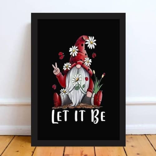 Quadro gnomo zen let it be 33x24cm - com vidro Moldura: madeira preta Informações do produto tire todas as suas dúvidas no descritivo abaixo: decoração para quarto, sala, cozinha, escritório, área gourmet e muito mais. Chega de paredes vazias medidas - cada peça tem 33x24cm a4 . Material do papel - papel fotográfico brilhante de altíssima resolução acabamento - todos os quadros são acompanhados de vidro para proteção da imagem. - moldura em madeira maciça na cor preta e pendurador . - os quadros são embalados de forma segura com plástico bolha com camada dupla de acordo com o tamanho dos quadros. - de 3 meses. Meu quadro chegou. Como posso fixá-lo Você precisa apenas de um martelo e um prego, pois os quadros já vão acompanhados de penduradores. Esta é a forma mais indicada. Como posso limpar meu quadro A limpeza é feita como um móvel comum da sua casa. Apenas um pano seco ou espanador são suficientes para tal Ean: 7895142252140