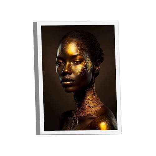 Quadro Golden Black Woman -- Br Artes Quadro Golden Black Woman -- BR ARTES Moldura Branca - Grande 118x78 - - Qualidade Premium (padrão museu)