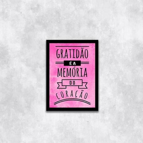 Quadro gratidão é a memória do coração 33x24cm - com vidro Moldura: madeira preta Informações do produto tire todas as suas dúvidas no descritivo abaixo: decoração para quarto, sala, cozinha, escritório, área gourmet e muito mais. Chega de paredes vazias medidas - cada peça tem 33x24cm a4 . Material do papel - papel fotográfico brilhante de altíssima resolução acabamento - todos os quadros são acompanhados de vidro para proteção da imagem. - moldura em madeira maciça na cor preta e pendurador . - os quadros são embalados de forma segura com plástico bolha com camada dupla de acordo com o tamanho dos quadros. - de 3 meses. Meu quadro chegou. Como posso fixá-lo Você precisa apenas de um martelo e um prego, pois os quadros já vão acompanhados de penduradores. Esta é a forma mais indicada. Como posso limpar meu quadro A limpeza é feita como um móvel comum da sua casa. Apenas um pano seco ou espanador são suficientes para tal Ean: 7895142227261