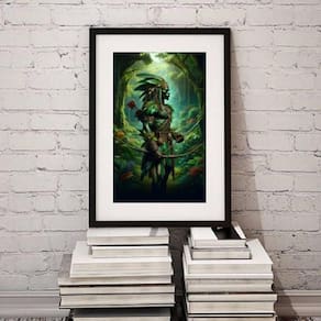 Quadro guerreiro oxóssi - 60x48cm Moldura: madeira preta Informações do produto tire todas as suas dúvidas no descritivo abaixo: decoração para quarto, sala, cozinha, escritório, área gourmet e muito mais. Chega de paredes vazias medidas - cada peça tem 60x48cm . Material do papel - papel fotográfico brilhante de altíssima resolução acabamento - todos os quadros são acompanhados de vidro para proteção da imagem. - moldura em madeira maciça na cor preta ou branca conforme produto escolhido e pendurador. - paspatur branco com 7cm de largura - os quadros são embalados de forma segura com plástico bolha com camada dupla de acordo com o tamanho dos quadros. Garantia - garantia de 3 meses. Meu quadro chegou. Como posso fixá-lo Você precisa apenas de um martelo e um prego, pois os quadros já vão acompanhados de penduradores. Esta é a forma mais indicada. Como posso limpar meu quadro A limpeza é feita como um móvel comum da sua casa. Apenas um pano seco ou espanador são suficientes para tal