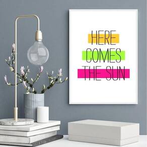 Quadro here comes the sun- colorido 24x18cm Moldura: madeira preta Informações do produto tire todas as suas dúvidas no descritivo abaixo: decoração para quarto, sala, cozinha, escritório, área gourmet e muito mais. Chega de paredes vazias medidas - cada peça tem 24x18cm a5 . Material do papel - papel fotográfico brilhante de altíssima resolução acabamento - todos os quadros são acompanhados de uma película de acetato para proteção da imagem. - os quadros são embalados de forma segura com plástico bolha com camada dupla de acordo com o tamanho dos quadros. Garantia - garantia de 3 meses. Meu quadro chegou. Como posso fixá-lo Você precisa apenas de um martelo e um prego, pois os quadros já vão acompanhados de penduradores. Esta é a forma mais indicada. Caso prefira, você pode utilizar uma fita dupla face neste caso, sugerimos de alta qualidade para evitar que descole e seu quadro caia . Como posso limpar meu quadro A limpeza é feita como um móvel comum da sua casa. Apenas um pano seco ou espanador são suficientes para tal Ean: 7895312289136