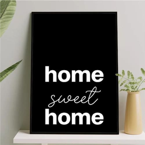 Quadro home sweet home minimalista 24x18cm - com vidro Moldura: madeira preta