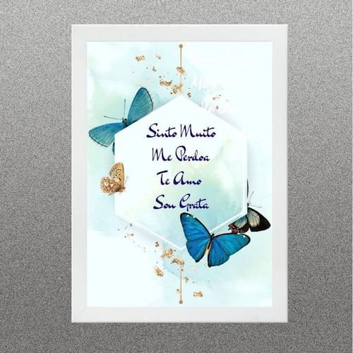 Quadro ho'oponopono - borboletas geométrico 45x34cm Moldura: madeira branca Informações do produto tire todas as suas dúvidas no descritivo abaixo: decoração para quarto, sala, cozinha, escritório, área gourmet e muito mais. Chega de paredes vazias. Medidas - cada peça tem 45x34cm a3 . Material do papel - papel fotográfico brilhante de altíssima resolução acabamento - todos os quadros são acompanhados de uma película de acetato para proteção da imagem. - os quadros são embalados de forma segura com plástico bolha com camada dupla de acordo com o tamanho dos quadros. - de 3 meses. Meu quadro chegou. Como posso fixá-lo Você precisa apenas de um martelo e um prego, pois os quadros já vão acompanhados de penduradores. Esta é a forma mais indicada. Caso prefira, você pode utilizar uma fita dupla face neste caso, sugerimos de alta qualidade para evitar que descole e seu quadro caia . Como posso limpar meu quadro A limpeza é feita como um móvel comum da sua casa. Apenas um pano seco ou espanador são suficientes para tal Marca: Não Informado Ean: 7895875100671