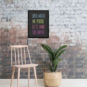 Quadro ho'oponopono mágico fundo preto 45x34cm - com vidro Moldura: madeira branca Informações do produto tire todas as suas dúvidas no descritivo abaixo: decoração para quarto, sala, cozinha, escritório, área gourmet e muito mais. Chega de paredes vazias medidas - cada peça tem 45x34cm a3 . Material do papel - papel fotográfico brilhante de altíssima resolução acabamento - todos os quadros são acompanhados de vidro para proteção da imagem. - moldura em madeira maciça na cor preta ou branca conforme produto escolhido e pendurador . - os quadros são embalados de forma segura com plástico bolha com camada dupla de acordo com o tamanho dos quadros. Garantia - garantia de 3 meses. Meu quadro chegou. Como posso fixá-lo Você precisa apenas de um martelo e um prego, pois os quadros já vão acompanhados de penduradores. Esta é a forma mais indicada. Como posso limpar meu quadro A limpeza é feita como um móvel comum da sua casa. Apenas um pano seco ou espanador são suficientes para tal