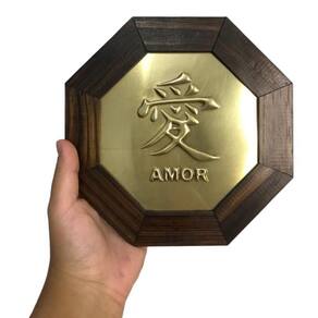 Quadro Ideograma Amor Madeira Imbuia Oitavado e Metal 18 Cm Quadro Ideograma Amor Madeira Imbuia Oitavado e Metal 18 Cm