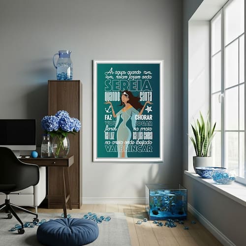 Quadro Iemanjá - Sereia Quando Canta Faz Chorar - 70x50cm - Cor: Moldura Branca