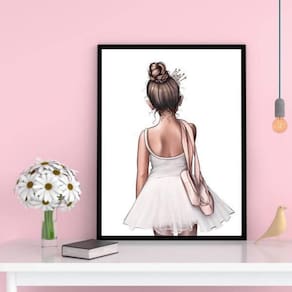 Quadro ilustração bailarina de costas 45x34cm - com vidro Moldura: madeira preta Informações do produto tire todas as suas dúvidas no descritivo abaixo: decoração para quarto, sala, cozinha, escritório, área gourmet e muito mais. Chega de paredes vazias medidas - cada peça tem 45x34cm a3 . Material do papel - papel fotográfico brilhante de altíssima resolução acabamento - todos os quadros são acompanhados de vidro para proteção da imagem. - moldura em madeira maciça na cor preta e pendurador . - os quadros são embalados de forma segura com plástico bolha com camada dupla de acordo com o tamanho dos quadros. - de 3 meses. Meu quadro chegou. Como posso fixá-lo Você precisa apenas de um martelo e um prego, pois os quadros já vão acompanhados de penduradores. Esta é a forma mais indicada. Como posso limpar meu quadro A limpeza é feita como um móvel comum da sua casa. Apenas um pano seco ou espanador são suficientes para tal
